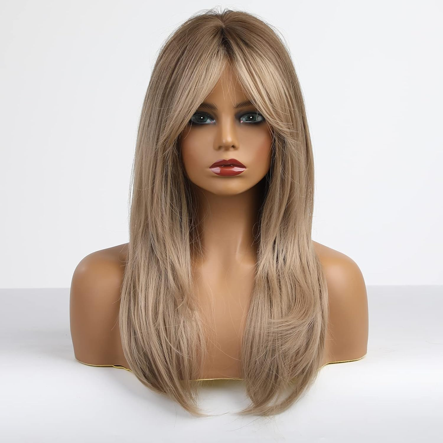 Long Layered Synthetic Hair Wigs for Women with Bang (Dark Blonde)